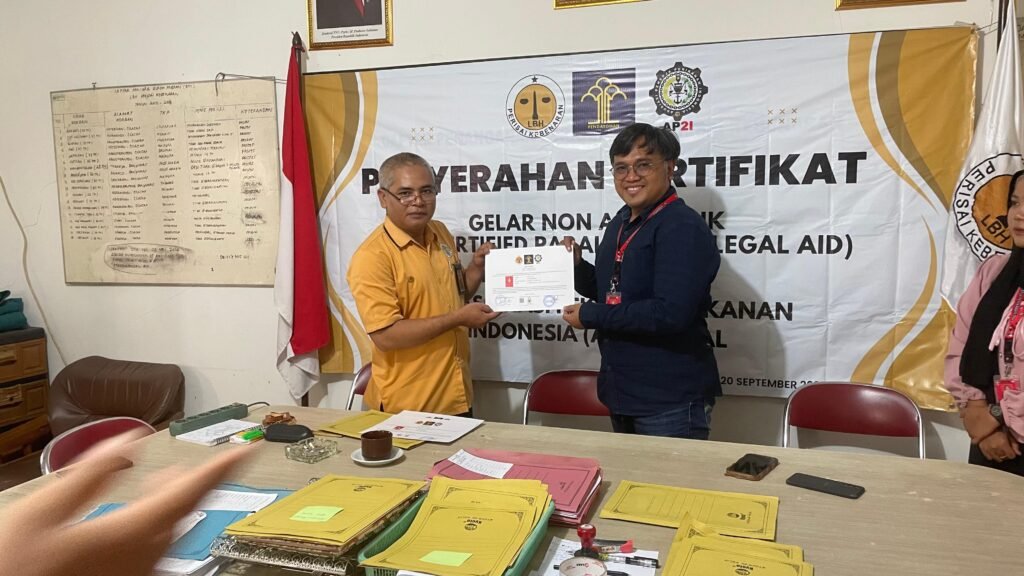 Dewan Pengurus Pusat Asosiasi Pekerja Perikanan Indonesia (DPP AP2I) menerima Certified Paralegal of Legal Aid (CPLA) dari Badan Pembinaan Hukum Nasional Kementerian Hukum Republik Indonesia (BPHN Kemenkum RI) yang diserahkan oleh Lembaga Bantuan Hukum (LBH) Perisai Kebenaran, yang dilakukan di kantor LBH Perisai Kebenaran di Purwokerto, Jawa Tengah, Sabtu 20 September 2025.