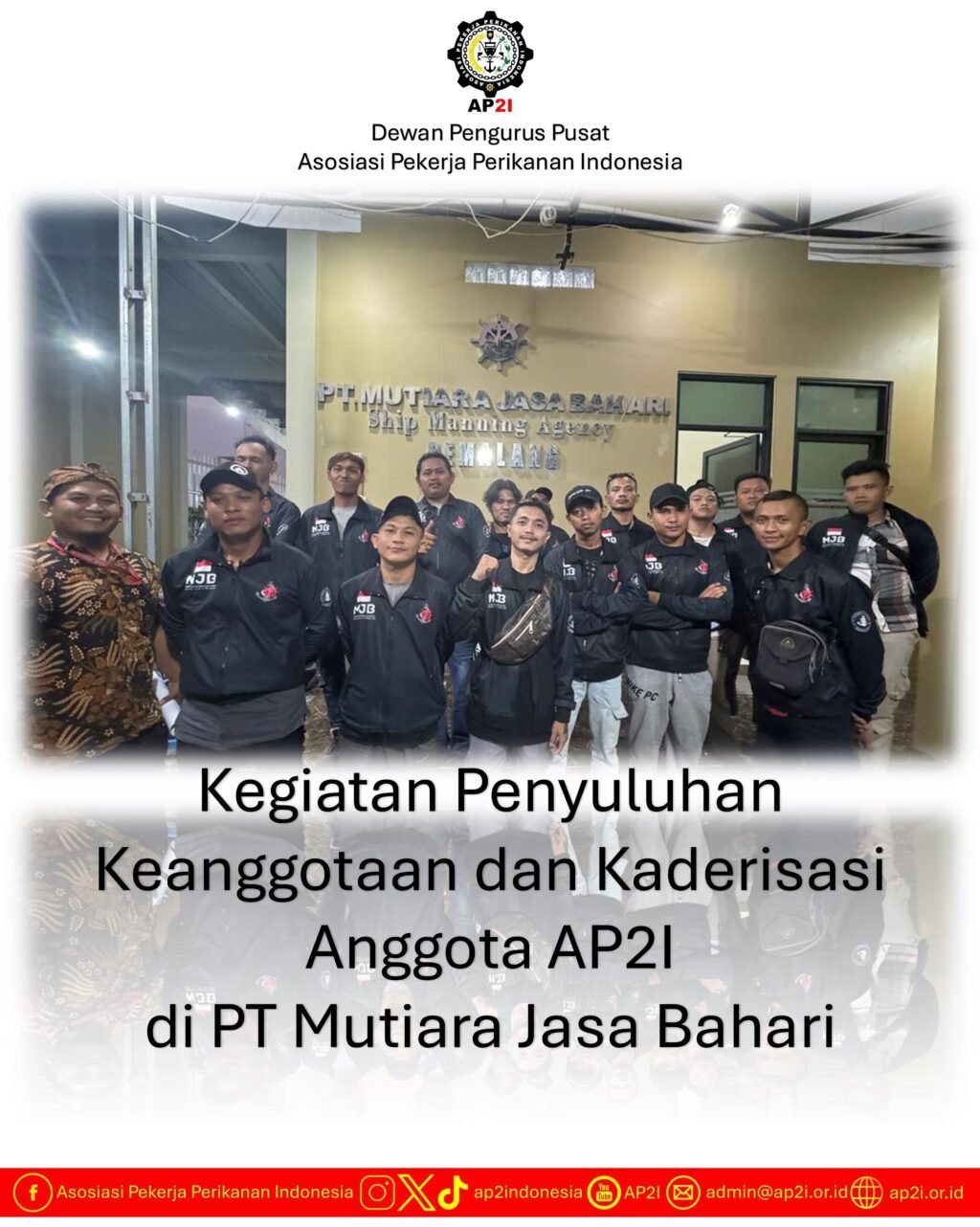 Asosiasi Pekerja Perikanan Indonesia (AP2I) merupakan wadah yang menghimpun individu yang bergerak di sektor perikanan, khususnya yang bekerja sebagai awak kapal perikanan. Dalam menjalankan perannya, AP2I tak hanya bertindak sebagai organisasi keanggotaan, tetapi juga sebagai fasilitator pengembangan profesionalisme, perlindungan hak, dan peningkatan kapasitas sumber daya manusia. Salah satu bentuk konkret peran tersebut adalah melalui penyuluhan keanggotaan dan kaderisasi, khususnya kepada anggota yang akan bekerja sebagai awak kapal melalui PT Mutiara Jasa Bahari.