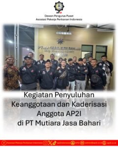 Dewan Pengurus Pusat Asosiasi Pekerja Perikanan Indonesia (DPP AP2I) melalukan kegiatan Penyuluhan Keanggotaan kepada pelaut Anggota AP2I yang akan bekerja di kapal penangkap ikan berbendera Prancis yang akan berangkat melalui salah satu perusahaan keagenan awak kapal mitra kerja AP2I, yakni PT Almas Putra Samudra (APS). Kegiatan tersebut dilaksanakan di kantor PT APS di Tegal, Jawa Tengah, Selasa (30/09/25).